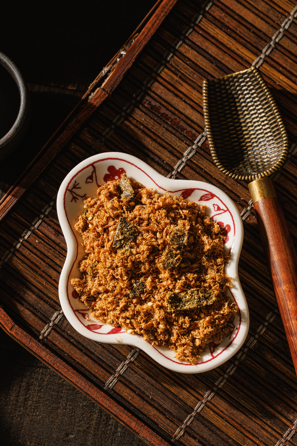 新鮮牛蒡低溫真空乾燥,以釀造醬油加上海苔與芝麻烘炒,入口即感受到牛蒡的香味,富含膳食纖維及多種營養價值,全素食者也可食用。