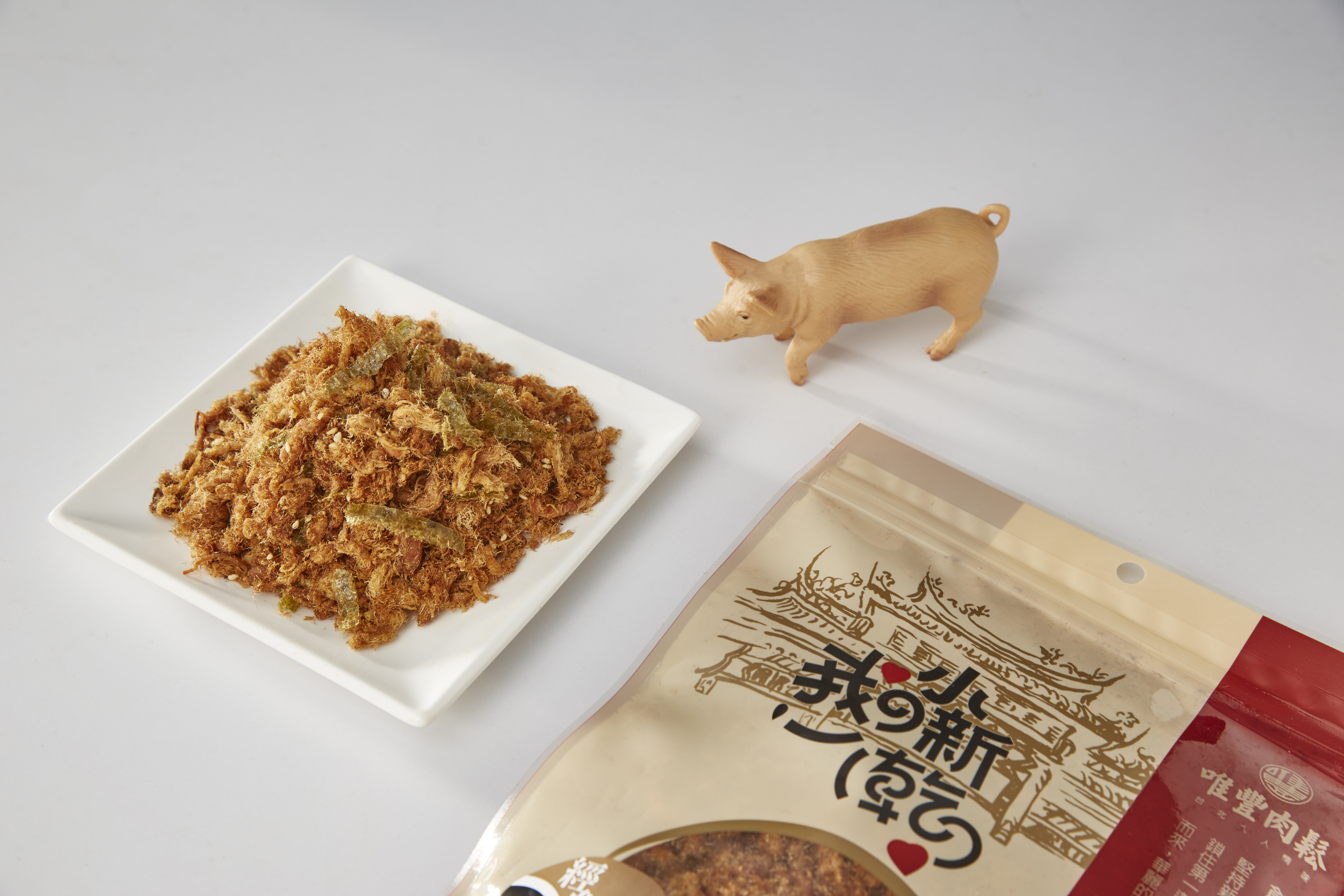 100%台灣溫體豬肉製作,不添加豆粉及色素,遵循傳統工法製成,加入海苔及芝麻,提升口感及香味更補充營養成分。